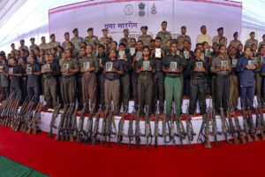 #WATCH | Chhattisgarh | 208 Naxalites surrender and lay down their weapons before security forces in Bastar's Jagdalpur to join the mainstream, as they express confidence in the Constitution of India pic.twitter.com/mDkpFOvLSP