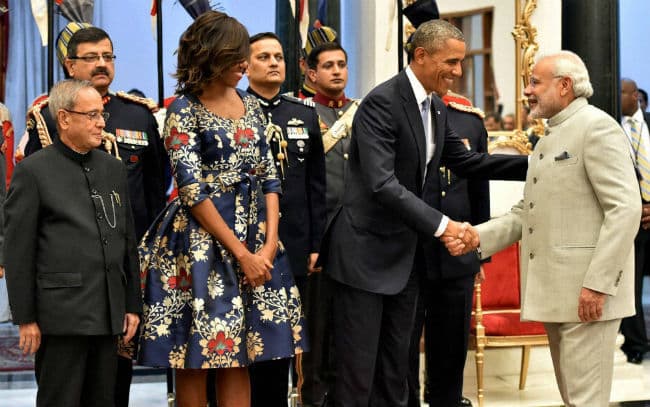 नयी दिल्ली : अमेरिकी राष्ट्रपति बराक ओबामा ने राष्ट्रपति प्रणव मुखर्जी द्वारा उनके सम्मान में दिए गए रात्रिभोज में कहा कि वह ‘‘मोदी कुर्ता’’ पहनना चाहते थे. ओबामा ने अपना भाषण शुरू करते हुए कहा, ‘‘हम आपकी दोस्ती महसूस करते हैं और मैं बेहद सम्मानित महसूस कर रहा हूं.’’ उन्होंने अमेरिका में आयी एक खबर को याद किया जिसमें सवाल किया गया था कि मिशेल ओबामा के अलावा और कौन फैशन आइकन है और कहा, ‘‘मैं खुद मोदी कुर्ता पहनने की सोच रहा था.’’