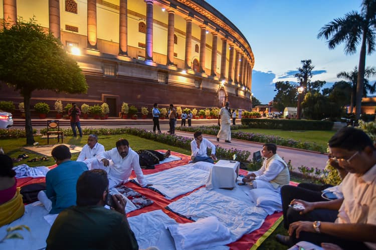 Also Read: Monsoon Session 2022: राज्यसभा में अगले सप्ताह महंगाई पर होगी चर्चा! वेंकैया नायडू से मिले विपक्षी नेता दही-चावल से लेकर ‘गाजर के हलवे’ तक की व्यवस्थासंसद में अपने निलंबन और मंहगाई के मुद्दे पर चर्चा की मांग को लेकर करीब 50 घंटे के विरोध प्रदर्शन पर बैठे सांसदों के भोजन आदि की व्यवस्था के लिए विपक्षी पार्टियां विशेष इंतजाम कर रही हैं और इस प्रदर्शन में शामिल सांसदों के लिए दही-चावल से लेकर इडली-सांभर, ‘गाजर का हलवा से लेकर फल तक की व्यवस्था की गयी है. अपनी एकजुटता और राजनीतिक ताकत दिखाने के लिए किए जा रहे प्रदर्शन के लिए विपक्षी पार्टियां एकजुट हुई हैं और क्रमवार पार्टियों को धरने पर बैठे लोगों के लिए खाने-पीने के सामान से लेकर अन्य व्यवस्थाओं की जिम्मेदारी दी गयी है.