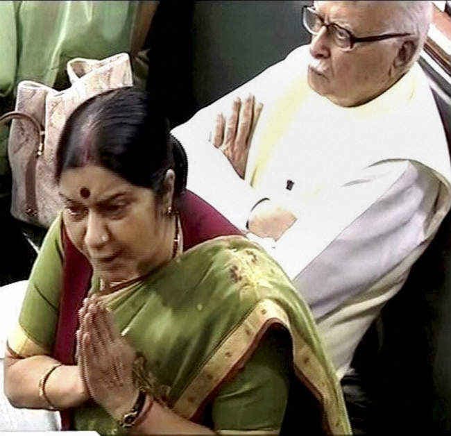 सुषमा ने करीब तीस मिनट तक कांग्रेस के एक एक आरोपों का जवाब दिया. इस समय आडवाणी काफी भावुक नजर आए. वह अपनी नम आंखों से आंसू नहीं टपकने देने का भरसक प्रयास करते दिखे. विदेश मंत्री के अपनी बात समाप्त करने पर आडवाणी ने खडे होकर उनकी पीठ थपथपाई.