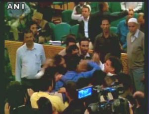 Ruckus in J&K Assembly, BJP MLA Ravinder Raina beat up Engineer Rashid for hosting a beef party. pic.twitter.com/akV8AF4RnL