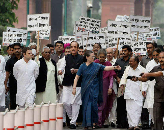 सोनिया के साथ इस दौरान पूर्व प्रधानमंत्री मनमोहन सिंह, संसद में पार्टी के नेता मल्लिकार्जुन खडगे और गुलाम नबी आजाद के साथ ही राहुल गांधी और ए के एंटनी भी थे. उन्होंने कहा, ‘‘प्रधानमंत्री चुप हैं जिससे साफ संकेत है कि इस तरह की सभी गतिविधियों को उनका मौन समर्थन है.’ सोनिया ने कहा कि सरकार से जुडे कुछ संगठन और सरकार में शामिल कुछ लोग इन कृत्यों में शामिल हैं जो समाज की बहुरंगी संस्कृति तथा मूलभूत विचारों पर हमला है और इससे असहिष्णुता बढ़ रही है. उन्होंने कहा कि कांग्रेस पार्टी इन ताकतों से पूरी शक्ति के साथ लडेगी.