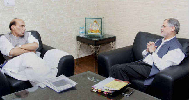 नयी दिल्ली : आप सरकार के साथ टकराव के बीच दिल्ली के उप राज्यपाल नजीब जंग ने आज केंद्रीय गृह मंत्री राजनाथ सिंह से मुलाकात की अरैर राष्ट्रीय राजधानी से जुडे कई मुद्दों पर चर्चा की.