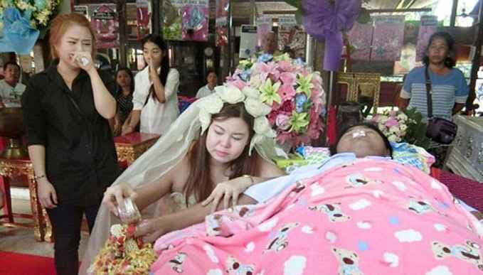 चैचोंग्सौ प्रांत की रहने वाली नैन थिपाहरात अपने होने वाले पति फिएट से बेहद प्यार करती थी. दोनों की सगाई हो चुकी थी और बहुत जल्द दोनों एक-दूसरे से शादी करने वाले थे. फिएट भी इस दिन का इंतजार कर रहे थे, लेकिन अचानक एक दिन उन्हें दिल का दौरा पड़ा और उनकी मौत हो गयी. नैन सगाई के बाद जिस बेसब्री से शादी का इंतजार कर रही थी उसका इंतजार फिएट की मौत के बाद खत्म हो गया.