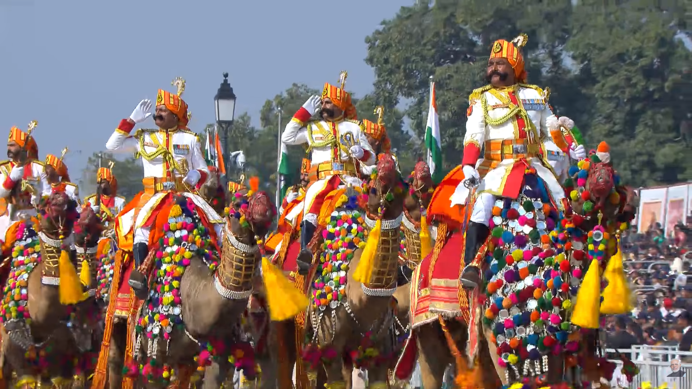 दिल्ली में कर्तव्य पथ पर गणतंत्र दिवस परेड के दौरान हिम योद्धा, बैक्ट्रियन ऊंट, जांस्कर पोनी, काले चील (शिकारी पक्षी) दिखाए गए. पांच देसी नस्ल के कुत्ते-मुधोल हाउंड, रामपुर हाउंड, चिप्पीपराई, कोम्बई और राजापलायम, जिन्हें अटैक और पेट्रोलिंग कुत्तों के तौर पर ट्रेन किया गया है, उन्हें भी परेड के दौरान दिखाया गया.