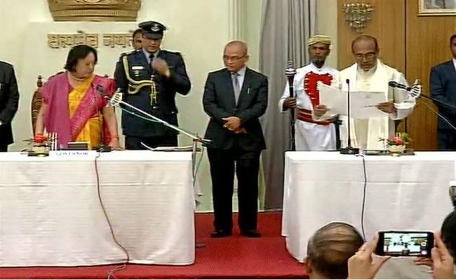 इंफाल : बीरेन सिंह ने आज मणिपुर के मुख्यमंत्री के रूप में शपथ ली. नगा पीपुल्स पार्टी के वाई जॉयकुमार ने उपमुख्यमंत्री के रूप में शपथ ली है.उनके साथ आठ अन्य मंत्रियों ने भी शपथ ली है. मुख्यमंत्री सहित अन्य मंत्रियों के राज्यपाल नजमा हेपतुल्ला ने शपथ दिलायी. मणिपुर में यह भाजपा की पहली सरकार है.