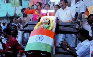 कभी जयललिता के विश्वासपात्र और काफी करीबी रहे ओ पन्नीरसेल्वम गुट (एआईएडीएमके) ने जे जयललिता की डमी और ताबूत के साथ चुनाव अभियान शुरू किया है. यह ताबूत बिलकुल उस ताबूत की नकल है, जिसमें निधन के बाद जयललिता को रखा गया था. जयललिता की डमी को उनके पसंदीदा हरी साड़ी से सजाया गया है. साथ ही उसे तिरंगे से ढंक कर रखा गया है. पन्नीसेल्वम गुट ने यह दांव इसलिए खेला है, ताकि जयललिता को भगवान की तरह पूजने वाले लोगों का सहानुभूति वोट उन्हें मिल जाये.