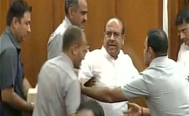 नयी दिल्ली : दिल्ली विधानसभा के विशेष सत्र के शुरू होने के 20 मिनट बाद ही स्पीकर ने भारतीय जनता पार्टी के नेता और विधानसभा में नेता विपक्ष विजेंद्र गुप्ता को मार्शल की मदद से बाहर निकलवा दिया.