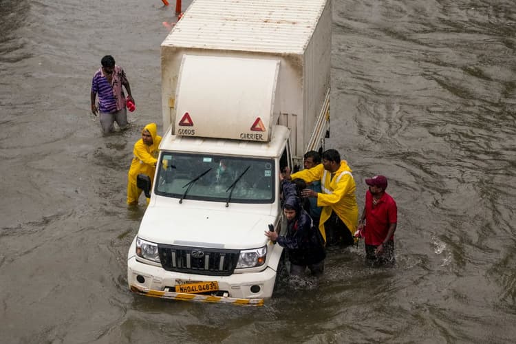 मुंबई में भारी बारिश पूरा जनजीवन बेहाल है. कई दिनों से हो रही लगातार बारिश के कारण निचले इलाकों में पानी भर गया है और कई इलाकों में जलभराव से यातायात बुरी तरह प्रभावित हुआ है. सोमवार को एक वायरल वीडियो में दिख रहा था कि सड़क पर कमर जितना पानी भरा हुआ है. बड़ी मुश्किल से स्कूली बच्चों के बस से उतार कर गंतव्य तक पहुंचाया गया. मुंबई एयरपोर्ट पर भी पानी भर जाने के कारण उड़ानें प्रभावित हो रही है. भारी बारिश के कारण रेल, सड़क और हवाई यात्रा पर प्रतिबंध लगा दिया गया है. कई इलाकों में स्कूलों और कॉलेजों को बंद कर दिया गया है.