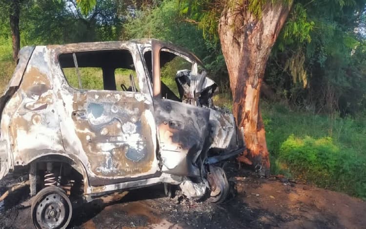 पहली घटना मध्यप्रदेश के हरदा जिले की है जहां, टायर फटने के बाद एक कार पेड़ से टकरा गई और उसमें अचानक आग लग गई, जिससे उसमें सवार एक महिला सहित चार लोगों की मौत हो गई. ये सभी एक ही परिवार से थे. यह जानकारी एक पुलिस अधिकारी ने दी. उन्होंने कहा कि हादसे के वक्त ये लोग दीपगांव में एक शादी समारोह में शामिल होने के बाद अपने गांव वरकला लौट रहे थे. पटेल ने बताया कि कार का एक टायर फट गया, जिसके बाद वाहन एक पेड़ से टकरा गया और उसमें अचानक आग लग गई. देखते ही देखते आग की लपटों ने कार को अपनी चपेट में ले लिया और उसमें सवार चारों लोग वाहन के अंदर फंस गए और उनकी मौत हो गई.