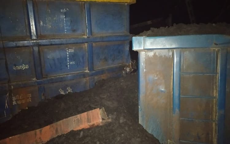 मालगाड़ी इंजन सहित पटरी से उतरने से हुई जोरदार आवाज