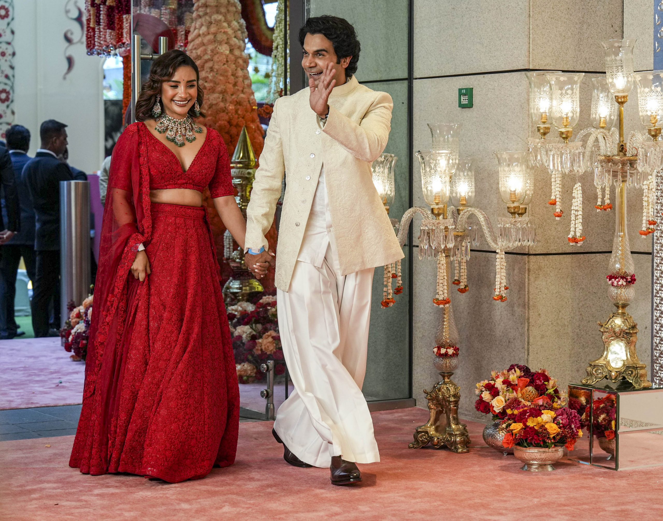 बॉलीवुड अभिनेता राजकुमार राव और पत्रलेखा मुंबई के जियो वर्ल्ड कन्वेंशन सेंटर में अनंत अंबानी और राधिका मर्चेंट की शादी के लिए पहुंचे.