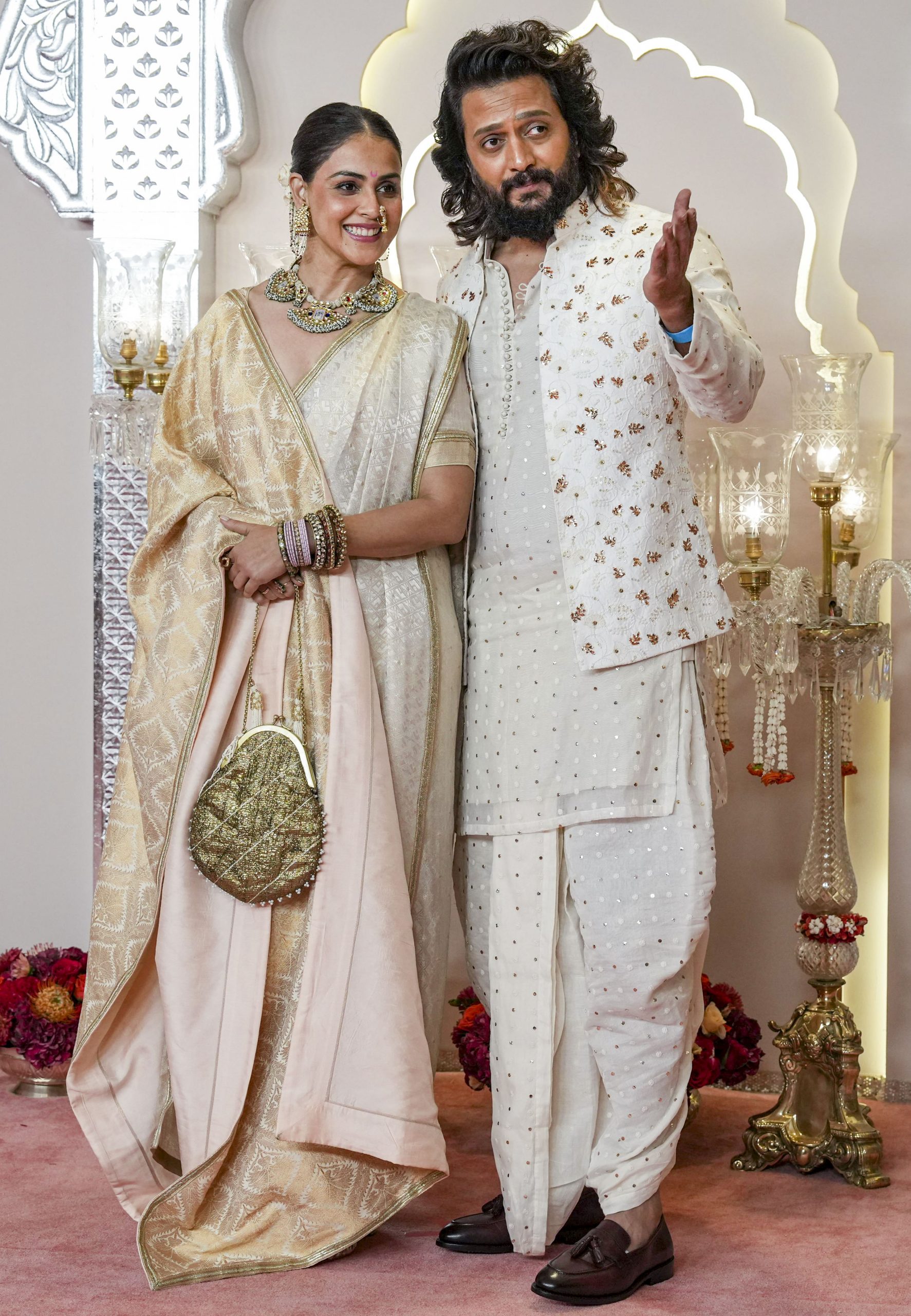 बॉलीवुड अभिनेता रितेश देशमुख और जेनेलिया डिसूजा मुंबई के जियो वर्ल्ड कन्वेंशन सेंटर में अनंत अंबानी और राधिका मर्चेंट की शादी के लिए पहुंचे.
