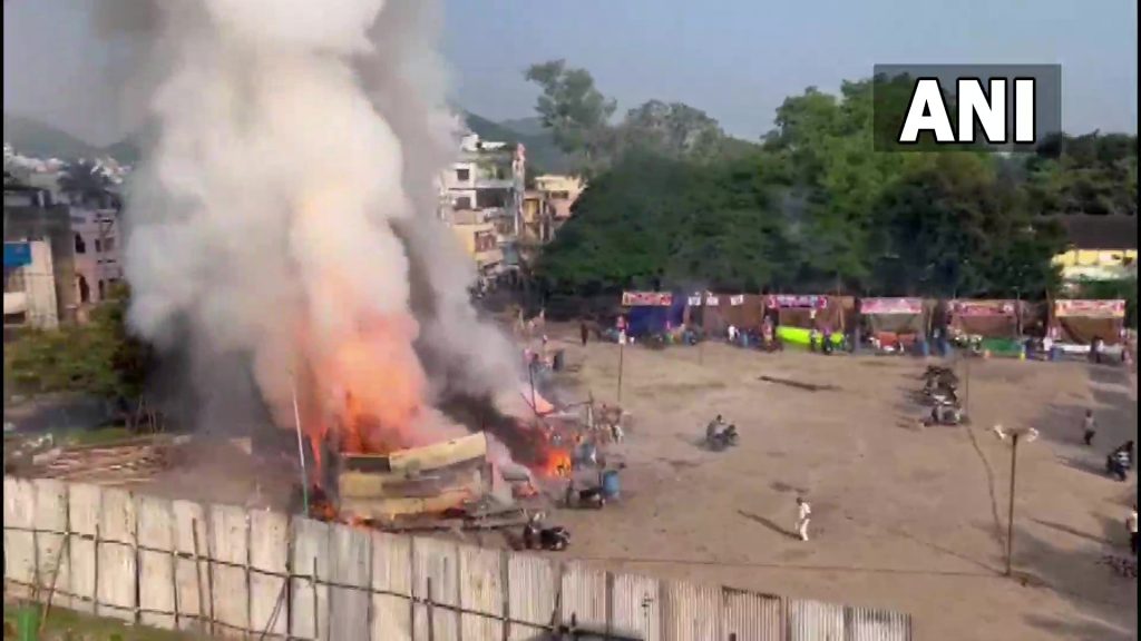 #WATCH आंध्र प्रदेश: विजयवाड़ा के गांधी नगर स्थित जिमखाना मैदान में आज सुबह पटाखा स्टॉल में आग लग गई। pic.twitter.com/S3N6z7DbwI