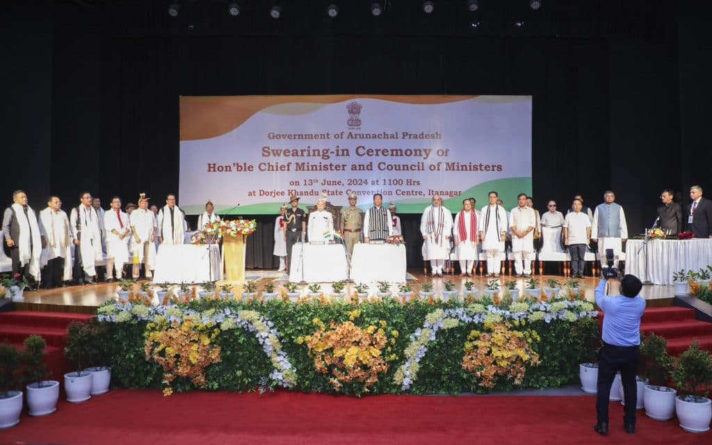 Arunachal Pradesh: बीजेपी नेता पेमा खांडू ने लगातार तीसरी बार अरुणाचल प्रदेश के मुख्यमंत्री के रूप में शपथ ली. मुक्तो विधानसभा क्षेत्र से विधायक खांडू को राज्यपाल के टी परनाइक ने शपथ दिलाई. इस मौके पर केंद्रीय गृह मंत्री अमित शाह, बीजेपी अध्यक्ष जेपी नड्डा और कई अन्य नेता मौजूद थे. दोरजी खांडू स्टेट कन्वेंशन सेंटर में समारोह का आयोजन किया गया जिसमें 11 अन्य विधायकों ने भी मंत्री पद की शपथ ली. इन मंत्रियों में उपमुख्यमंत्री चौना मीन, पूर्व विधानसभा अध्यक्ष पीडी सोना, बीजेपी की प्रदेश इकाई के अध्यक्ष बियुराम वाहगे और पूर्व मुख्यमंत्री कलिखो पुल की पत्नी दासंगलू पुल शामिल हैं.