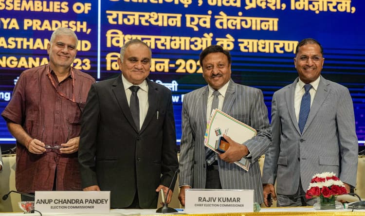मुख्य निर्वाचन आयुक्त राजीव कुमार ने सोमवार को चुनाव कार्यक्रमों की घोषणा की. उन्होंने कहा कि आयोग ने चुनावी राज्यों का दौरा कर वहां राजनीतिक दलों और अन्य संबंधित पक्षों के साथ विचार-विमर्श किया.