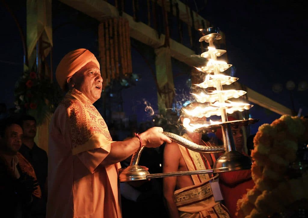 मुख्यमंत्री योगी आदित्यनाथ ने बुधवार शाम सरयू माता (नदी) की आरती की. इस मौके पर 1,121 वेदाचार्य एक ही रंग के परिधान में एक स्वर में आरती करते नजर आए.