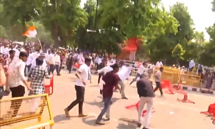 कांग्रेस कार्यकर्ताओं और पुलिस के जवानों के बीच झड़प हो गई. प्रदर्शनकारियों ने पुलिस के जवानों पर कुर्सियों से हमला किया. सोशल मीडिया पर वायरल वीडियो में कांग्रेस नेताओं को पुलिस बल पर कुर्सियों से हमला करते हुए साफ देखा जा सकता है.