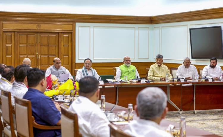 लोकसभा अध्यक्ष पद के लिए जारी खिंचतान के बीच रविवार को रक्षा मंत्री राजनाथ सिंह के आवास पर एनडीए की अहम बैठक हुई थी. बैठक में लोकसभा अध्यक्ष पद को लेकर गहन चर्चा की गई. बैठक में बीजेपी अध्यक्ष और केंद्रीय मंत्री जेपी नड्डा, किरेन रिजिजू, अश्विनी वैष्णव, ललन सिंह, चिराग पासवान समेत कई और नेता शामिल हुए थे.