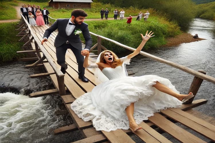 इंस्टाग्राम पर शेयर किए गए इस वीडियो में देखा जा सकता है कि शादी की रस्में पूरी होने के बाद दूल्हा अपनी दुल्हन को लेकर घर की ओर बढ़ रहा है. रास्ते में एक नदी आती है, जिसे पार करने के लिए एक लकड़ी का पुल बना हुआ है. यह पुल काफी कमजोर और खतरनाक नजर आता है, जिसे देखकर दुल्हन थोड़ी घबरा जाती है. दूल्हा उसे सांत्वना देता है और दोनों धीरे-धीरे पुल पार करने की कोशिश करते हैं. जैसे ही वे बीच में पहुंचते हैं, दुल्हन का बैलेंस बिगड़ जाता है और वह सीधा नदी में जा गिरती है.