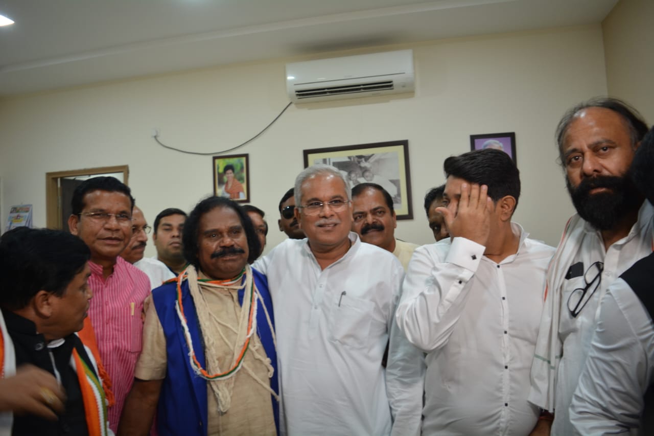 #WATCH | Chhattisgarh: Dr Nand Kumar Sai joins Congress in the presence of Chhattisgarh CM Bhupesh Baghel, in Raipur.
