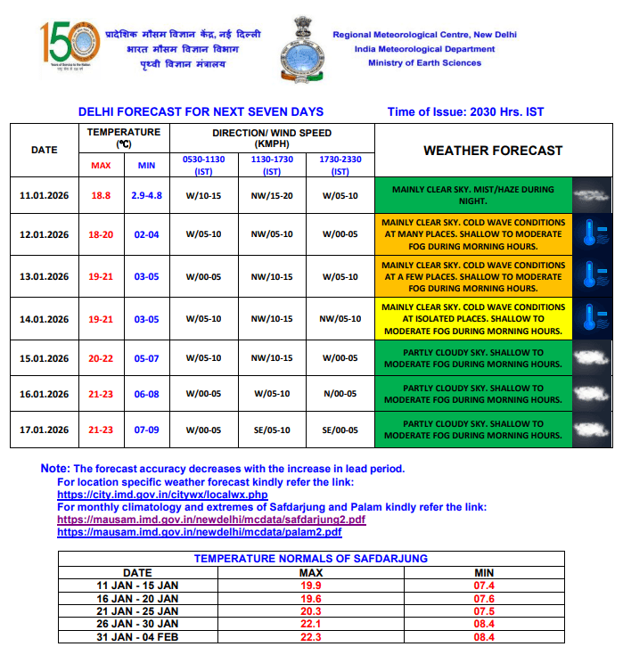 विभाग के अनुसार, 12 और 13 जनवरी को पंजाब, हरियाणा, हिमाचल प्रदेश और उत्तराखंड में शीतलहर से लेकर गंभीर शीतलहर की स्थिति बने रहने की संभावना है. 14 जनवरी को भी कुछ इलाकों में शीतलहर जारी रह सकती है, हालांकि इसके बाद ठंड की तीव्रता में धीरे-धीरे कमी आने की उम्मीद है.