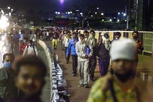कोरोना के फैलते संक्रमण के बीच काम से निकाल दिये गये लोग सिर पर छत और दो वक्त की रोटी की तलाश में घरों की तरफ निकल पड़े हैं. कोई पैदल चल रहा है, तो कोई साइकिल या ठेले पर अपनों का बोझ उठा रहा है. सबसे ज्यादा संख्या बिहार, उत्तर प्रदेश और झारखंड के लोगों की है. ये लोग पिछले कई दिनों से चल रहे हैं. कइयों ने तो पांच दिन से कुछ खाया-पिया भी नहीं है. बावजूद इसके किसी ने गोद में सात माह की बच्ची ले रखी है, तो कोई अपने पांच साल के बच्चे को कंधे पर उठाये चल रहा है. एक 70 साल की वृद्ध महिला भी पैदल गांव लौटने को मजबूर है.