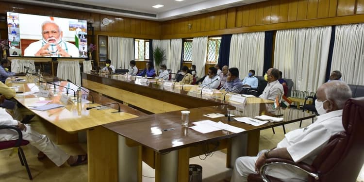 बैठक में हिस्सा ले रहे तमाम राज्यों के मुख्यमंत्री मास्क लगाए नजर आये तो वहीं, प्रधानमंत्री मोदी ने हरे रंग के बॉर्डर वाले सफेद गमछे से मुंह को ढंका हुआ था. सरकार के सूत्रों ने रविवार को संकेत दिए थे कि प्रधानमंत्री और मुख्यमंत्रियों के बीच महामारी से निपटने के तरीकों पर चर्चा के अलावा, लॉकडाउन को चरणबद्ध तरीके से समाप्त करने के उपायों पर भी विचार विमर्श हो सकता है. उल्लेखनीय है कि कोरोना संक्रमण को रोकने के लिये देश में 25 अप्रैल से 14 मई तक 21 दिन और 13 अप्रैल से तीन मई तक 19 दिन का लॉकडाउन घोषित किया जा चुका है.