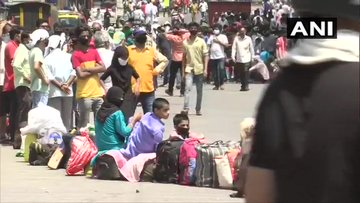 Maharashtra: Migrants in Mumbai's Dharavi form long queues, waiting to board buses to go to railway stations, to return to their home states on special trains. pic.twitter.com/DRhhFB2kLJ