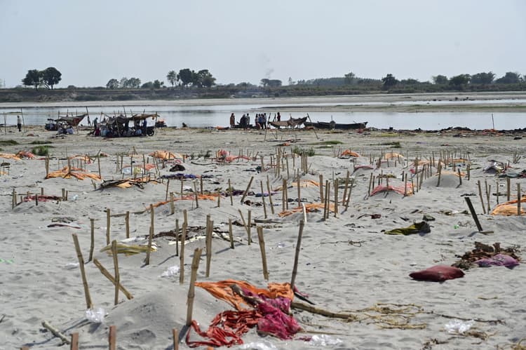 15 मई को समाचार एजेंसी पीटीआई ने कई तस्वीरें जारी की थी कि जिसमें प्रयागराज में नदी के किनारे बालू में गड़े शवों को देखा जा सकता है. पीटीआई की ओर से कहा गया था कि कथित तौर पर लकड़ी की कमी के कारण लोग कोरोना संक्रमितों के शव को बालू के नीचे दबा दे रहे हैं. वहीं कई शवों को गंगा में बहाया भी गया है. हालांकि उत्तर प्रदेश और बिहार सरकार ने नदियों के तटों पर कड़ी निगरानी लगा दी है.