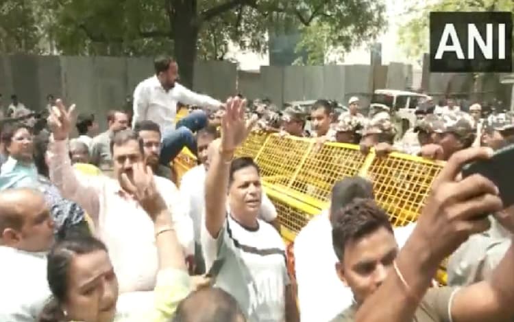 दिल्ली सीएम आवास के बाहर लगे केजरीवाल हाय-हाय के नारे