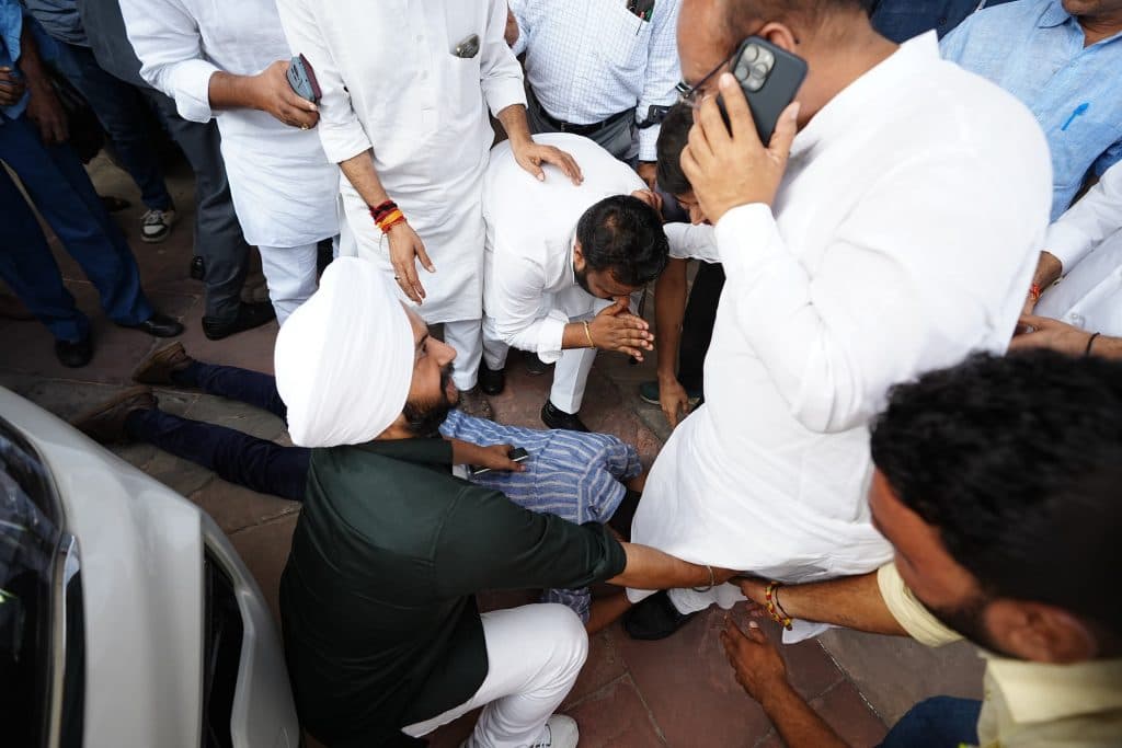 भाजपा विधायक इसके लिए तैयार नहीं थे. इसके बाद वहां जमकर ड्रामा हुआ. दिल्ली सरकार के मंत्री सौरभ भारद्वाज भाजपा विधायक के पैर पकड़ लिए. आप ने एक्स पर फोटो जारी करते हुए इसे ऐतिहासिक बताया और लिखा कि बस मार्शलों की बहाली के लिए शनिवार को विधायकों के सामने कैबिनेट नोट पास करने के बाद उस नोट को लेकर उपराज्यपाल के पास मुख्यमंत्री आतिशी, मंत्री और विधायक गए. भाजपा विधायकों ने भागने का पूरा प्रयास किया लेकिन मंत्री सौरभ भारद्वाज और आप नेताओं ने उन्हें भागने नहीं दिया. मुख्यमंत्री आतिशी खुद भाजपा विधायक की गाड़ी में बैठकर उपराज्यपाल आवास गयी. ताकि भाजपा विधायकों को भागने का कोई भी मौका ना मिले. इसके बाद उपराज्यपाल आवास के बाहर भी जमकर ड्रामा किया गया. आप विधायक सड़कों पर लेट गए.