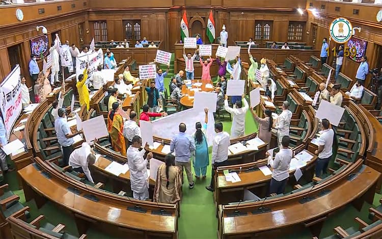 उपराज्यपाल के खिलाफ आप विधायकों ने की नारेबाजी
