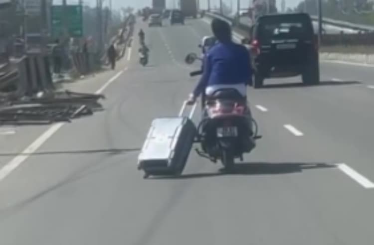 इस वायरल वीडियो में एक महिला स्कूटी चला रही है और उसके दूसरे हाथ में सूटकेस पकड़ा हुआ है. सबसे दिलचस्प बात यह है कि सूटकेस को सड़क पर रखा गया है और उसके पहिए की मदद से वह महिला के साथ-साथ चल रहा है, जैसे सूटकेस को भी स्कूटी की गति का साथ मिल गया हो. यह तरीका न केवल मजेदार है, बल्कि यह दर्शाता है कि भारतीय अपनी सोच और साधन से किसी भी समस्या का समाधान आसानी से ढूंढ लेते हैं.