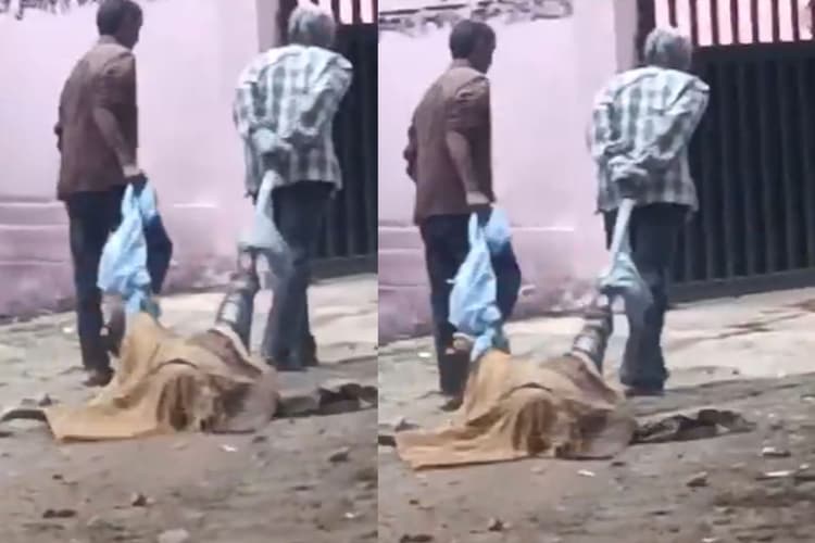 Dragged corpse Viral Video Social media: उत्तर प्रदेश के झांसी से इंसानियत को शर्मसार करने वाली एक घटना सामने आई है, जिसने हर किसी को हैरान कर दिया है. झांसी के मेडिकल कॉलेज के पोस्टमार्टम विभाग में, दो लोग एक शव को कपड़े से बांधकर घसीटते हुए ले जा रहे थे. इस घटना का वीडियो सोशल मीडिया पर वायरल होने के बाद स्वास्थ्य विभाग को एक बार फिर आलोचनाओं का सामना करना पड़ा है.