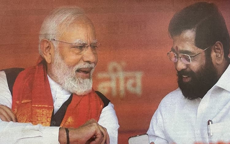 महाराष्ट्र में एक विज्ञापन को लेकर राजनीति तेज हो गयी है. दरअसल मुख्यमंत्री एकनाथ शिंदे के नेतृत्व वाली शिवसेना ने मंगलवार को विभिन्न अखबारों में पूरे पन्ने का विज्ञापन जारी किया जिसका शीर्षक था, राष्ट्र में मोदी, महाराष्ट्र में शिंदे सरकार. विज्ञापन में ऊपर शिवसेना का चुनाव चिह्न ‘तीर-कमान’ है. इसमें प्रधानमंत्री नरेंद्र मोदी और मुख्यमंत्री शिंदे की तस्वीर हैं. गौर करने वाली बात यह है कि इस विज्ञापन में शिवसेना संस्थापक दिवंगत बालासाहेब ठाकरे की कोई तस्वीर नहीं है जबकि पहले शिवसेना के हर इश्तहार में ठाकरे का चित्र प्रमुखता से होता था. अब इसी बात को लेकर एनसीपी नेता अजित पवार ने हमला किया है.