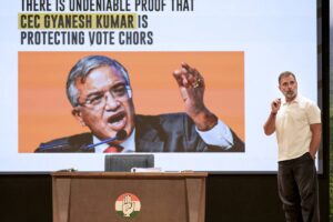 आयोग के जवाब से पहले राहुल गांधी ने मुख्य निर्वाचन आयुक्त कुमार पर ‘‘वोट चोरों’’ और ‘‘लोकतंत्र की हत्या करने वालों’’ को बचाने का आरोप लगाया. यही नहीं कांग्रेस नेता ने कर्नाटक के एक विधानसभा क्षेत्र के आंकड़ों का हवाला देते हुए दावा किया कि चुनाव से पहले कांग्रेस समर्थकों के वोट सुनियोजित तरीके से हटाए जा रहे थे.