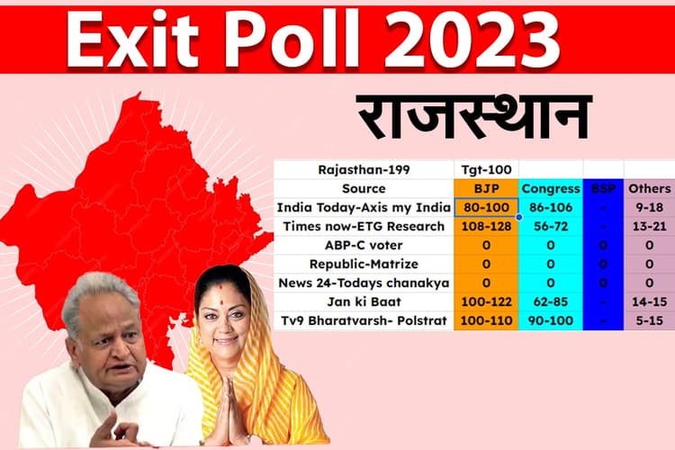 पांच राज्यों (राजस्थान, मध्य प्रदेश, छत्तीसगढ़, मिजोरम और तेलंगाना) के विधानसभा चुनाव के लिए मतदान समाप्त हो चुका है. अब सभी को 3 दिसंबर का इंतजार है. इस दिन ही साफ होगा की इन राज्यों में किसकी सरकार बनने वाली है. रिजल्ट आने से पहले राजस्थान को लेकर Exit Poll के आंकड़े सामने आ चुके हैं. इंडिया टुडे और एक्सिस माई इंडिया के अनुसार राजस्थान में बीजेपी और कांग्रेस के बीच कांटे की टक्कर दिख रही है.