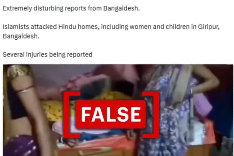 ‘एक्स’ पर एक यूजर ने वीडियो पोस्ट करते हुए कैप्शन दिया, ‘बांग्लादेश के गिरिपुर, मैमनसिंह में जिहादियों ने हिंदू इलाकों में घर-घर हमला किया और कुछ घरों में हिंदू महिलाओं के बच्चों के साथ बलात्कार किया और उनकी हत्या कर दी.’ यह वीडियो फेसबुक पर भी इसी दावे के साथ शेयर किया जा रहा है.