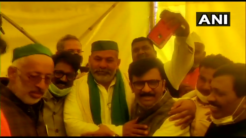 शिवसेना सांसद संजय राउत ने महाराष्ट्र के मुख्यमंत्री एवं पार्टी प्रमुख उद्धव ठाकरे के निर्देश के मुताबिक दिल्ली के पास गाजीपुर बॉर्डर पर प्रदर्शनकारी किसानों से मुलाकात की. शिवसेना केंद्र के तीन नए कृषि कानूनों के खिलाफ दो महीने से अधिक समय से दिल्ली की सीमाओं पर प्रदर्शन कर रहे किसानों का समर्थन कर रही है.