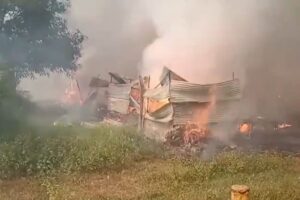 Firecracker Market Fire:उत्तर प्रदेश के फतेहपुर जिले में रविवार दोपहर एक अस्थायी पटाखा बाजार में भीषण आग लग गई जिससे 60 से अधिक दुकानें और बड़ी संख्या में मोटरसाइकिल जलकर खाक हो गईं.