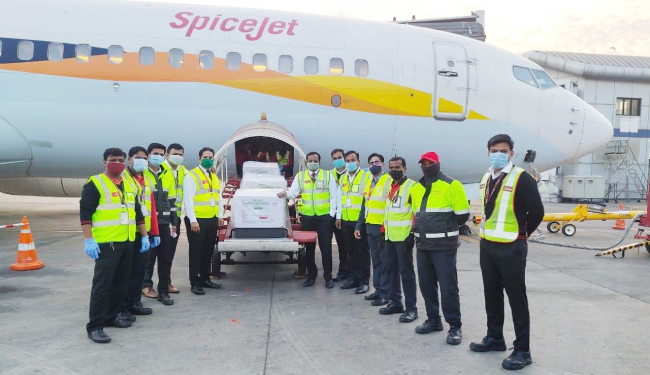 SpiceJet has carried India’s first consignment of Covid vaccine today. The first consignment of 'Covishield' consisting of 34 boxes and weighing 1088 kg was carried from #Pune to #Delhi: Ajay Singh, Chairman & Managing Director, SpiceJet pic.twitter.com/YEfiiENJBO