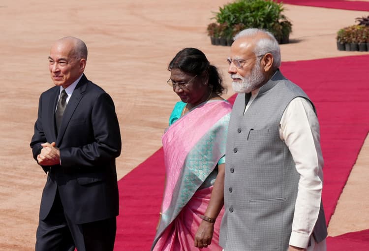 कंबोडियाई राजा के लिए मंगलवार को राष्ट्रपति भवन में स्वागत समारोह आयोजित किया गया और राष्ट्रपति द्रौपदी मुर्मू उनके सम्मान में मंगलवार शाम को राजकीय रात्रि भोज का आयोजन करेंगी. कंबोडियाई राजा राष्ट्रपति और प्रधानमंत्री नरेंद्र मोदी के साथ द्विपक्षीय बैठक भी करेंगे. उनका उप राष्ट्रपति जगदीप धनखड़ और विदेश मंत्री एस जयशंकर से भी मुलाकात करने का कार्यक्रम है.