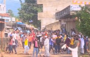 गुजरात के नर्मदा जिले में शुक्रवार को विश्व हिंदू परिषद (विहिप) द्वारा निकाले गए एक धार्मिक जुलूस पर उपद्रवियों द्वारा किए गए पथराव में दो पुलिसकर्मियों सहित कम से कम 12 व्यक्ति घायल हो गए. यह जानकारी पुलिस ने दी. पुलिस अधीक्षक (एसपी) प्रशांत सुंबे ने कहा कि सुबह सेलाम्बा गांव में एक धार्मिक स्थल के पास विहिप की ‘शौर्य जागरण यात्रा’ पर पथराव किया गया, जिसके बाद कुछ लोगों ने दो दुकानों में आग लगा दी. उन्होंने कहा कि जब यात्रा एक धार्मिक स्थल से गुजरी, तो कुछ उपद्रवियों ने जुलूस पर पथराव किया. कुछ पुलिसकर्मियों सहित लगभग 10 से 15 लोग घायल हो गए.