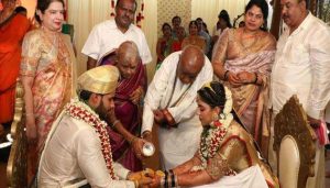 #WATCH Karnataka: Nikhil Kumarswamy, son of former Karnataka CM HD Kumaraswamy, tied the knot with Revathi, the grand-niece of former Congress Minister for Housing M Krishnappa, today in Ramnagar. (Video source: anonymous wedding guest) pic.twitter.com/5DH9fjNshQ
