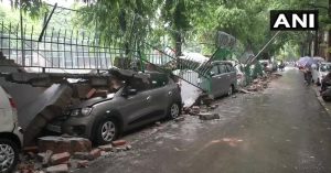 #WATCH: A number of vehicles damaged in Saket area's J Block, after a side wall collapsed following incessant downpour in Delhi. pic.twitter.com/6NOQXcQXH9