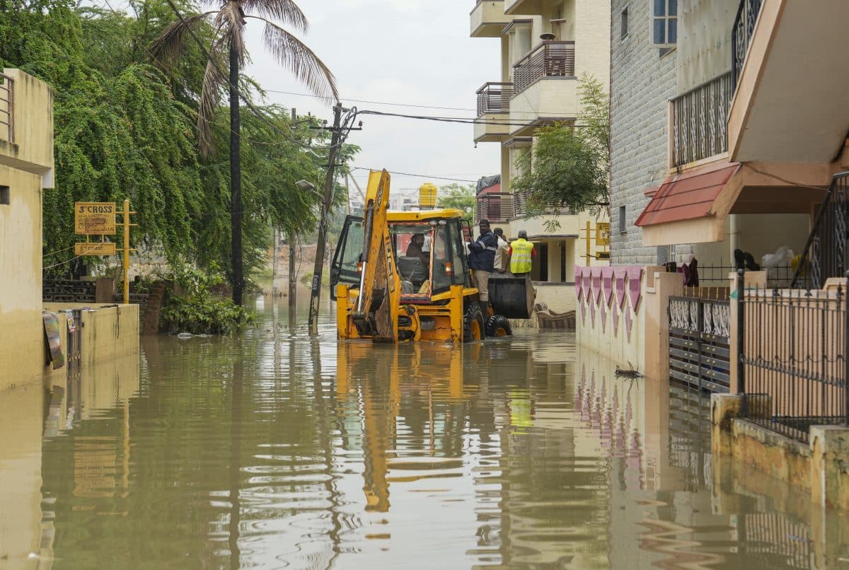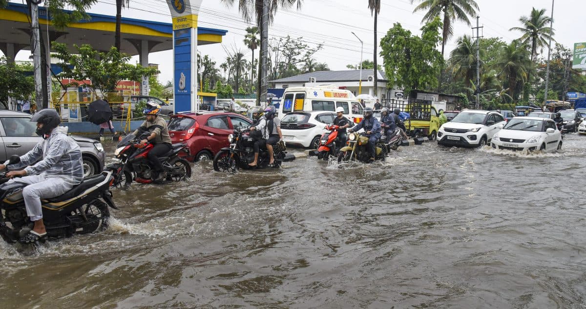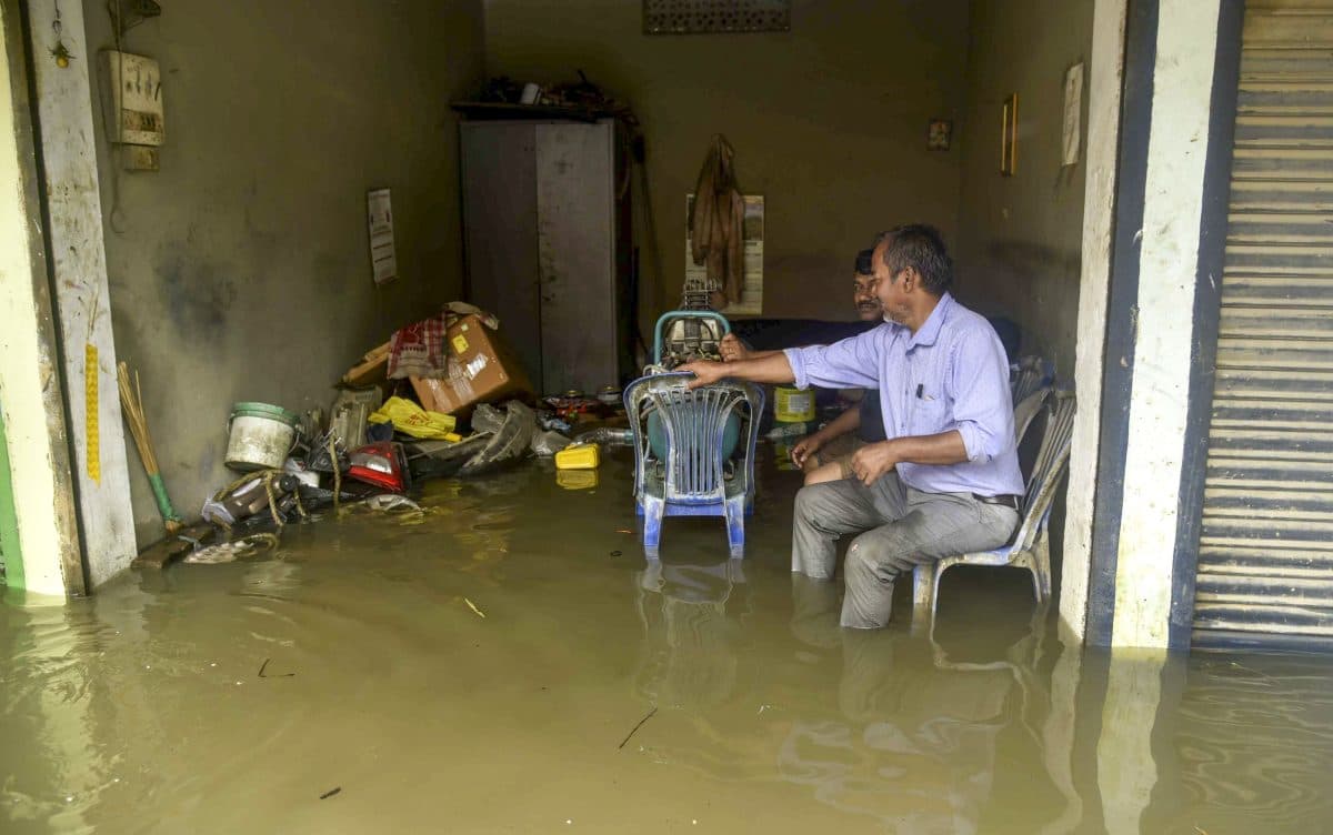 भारी से बहुत भारी बारिश, घरों में घुसा पानी, गुवाहाटी में जेसीबी के सहारे सड़क पार कर रहे लोग, देखें फोटो