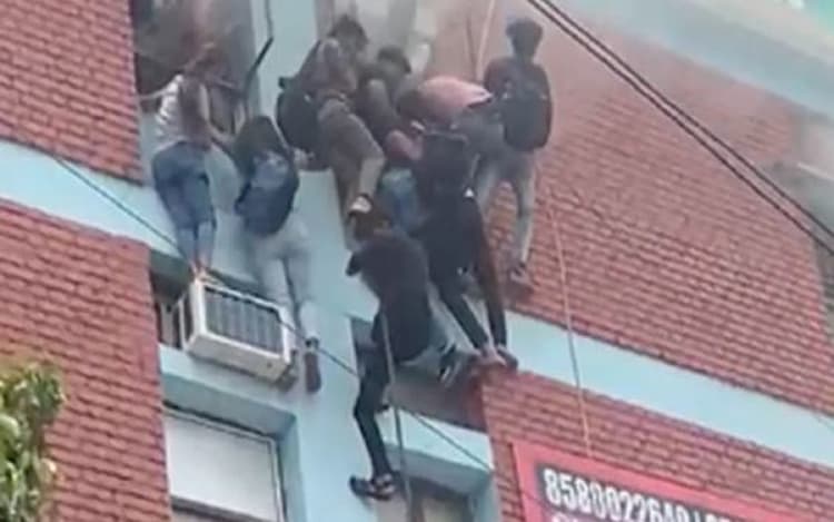 घटना का वायरल वीडियो बेहद भयावह था. वीडियो में नजर आ रहा है कि दमकलकर्मी लोगों को खिड़कियों के माध्यम से छात्रों को बाहर निकाल रहे हैं. इनमें ज्यादातर छात्र हैं. छात्र घबराये हुए नजर आ रहे हैं. वे रस्सियों के सहारे बिल्डिंग की सबसे आखिरी मंजिल से नीचे उतरते नजर आ रहे हैं. उस मंजिल से धुआं भी निकलता देखा जा सकता है.