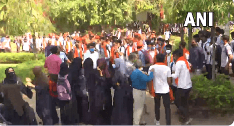 आज कर्नाटक के उडुपी जिले के मणिपाल स्थित एमजीएम कॉलेज में उस समय तनाव काफी बढ़ गया जब भगवा शॉल ओढ़े विद्यार्थियों और हिजाब पहनी छात्राओं के दो समूहों ने एक दूसरे के खिलाफ नारेबाजी की. बुर्का और हिजाब पहनीं कॉलेज की छात्राओं के एक समूह ने कॉलेज परिसर में प्रवेश किया और सिर पर स्कार्फ़ पहनने के अधिकार के समर्थन में नारे लगाते हुए परिसर में विरोध प्रदर्शन किया. इसी बीच, भगवा शॉल पहने कुछ लड़के-लड़कियां भी कॉलेज पहुंचे और दूसरे समूह के खिलाफ नारेबाजी की.