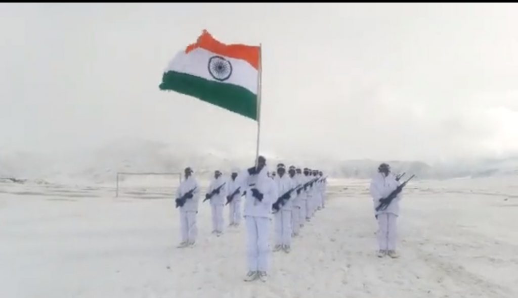 लद्दाख सीमा पर -35 तापमान में फहराया तिरंगा